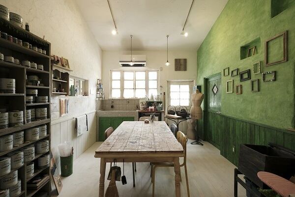 また、アイルランドや南フランスの素朴なカントリー家具やシャッター、扉にもよく見られる色調です。このアンティーブグリーンもダークワックスや、ブラックワックスを使うことで表現したいスタイルの幅が広がります。