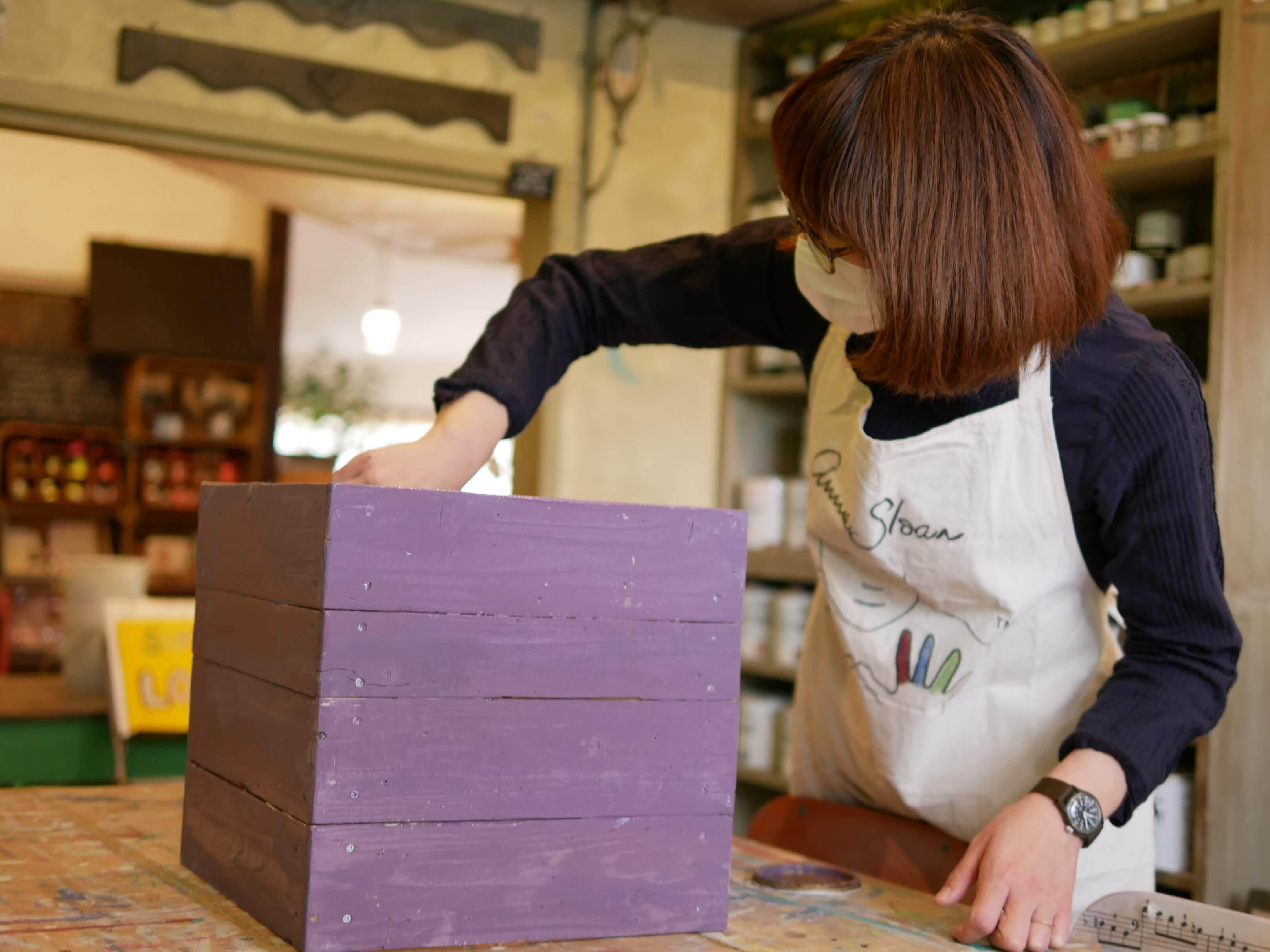 アニースローンのカラーパレットには少なめの紫。くすんだダムソンパープル(プラムの紫)のカラーです。